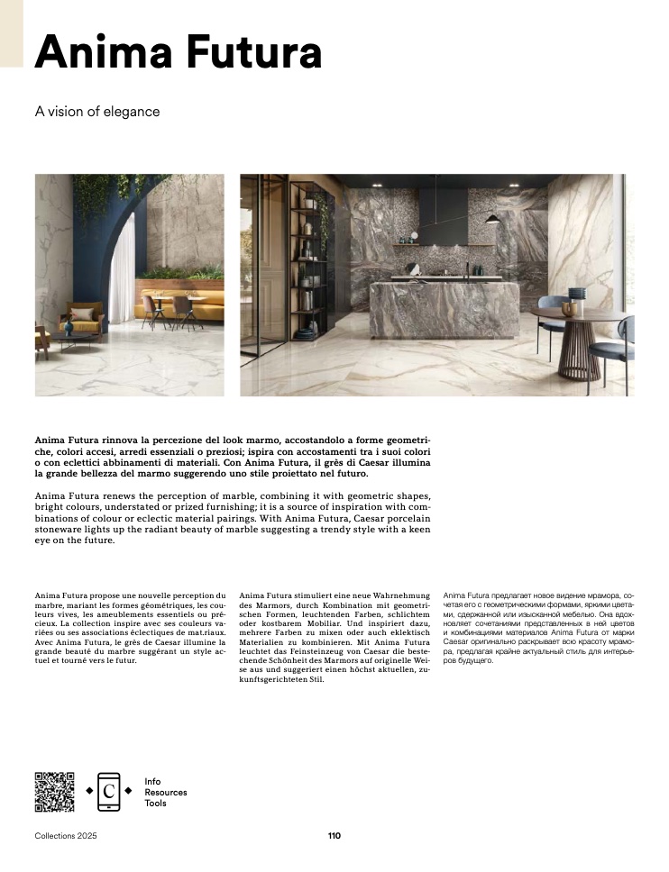 o con eclettici abbinamenti di materiali. Con Anima Futura, il gr