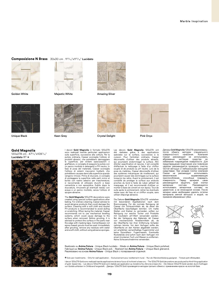 Solo per rivestimento. - Only for wall application. - Exclusivement pour revêtement mural. - Nur als Wandverkleidung geeignet. - Только для облицовки.