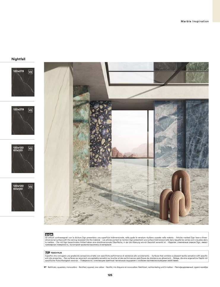 ère. - Die mit Sign bezeichneten Artikel haben eine dreidimensionale Oberfläche, in der die Äderung wie ein Basrelief versenkt ist. - Изделия, отмеченные знаком Sign, имеют