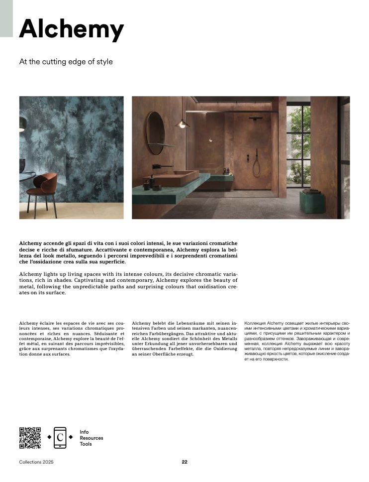 tions, rich in shades. Captivating and contemporary, Alchemy explores the beauty of