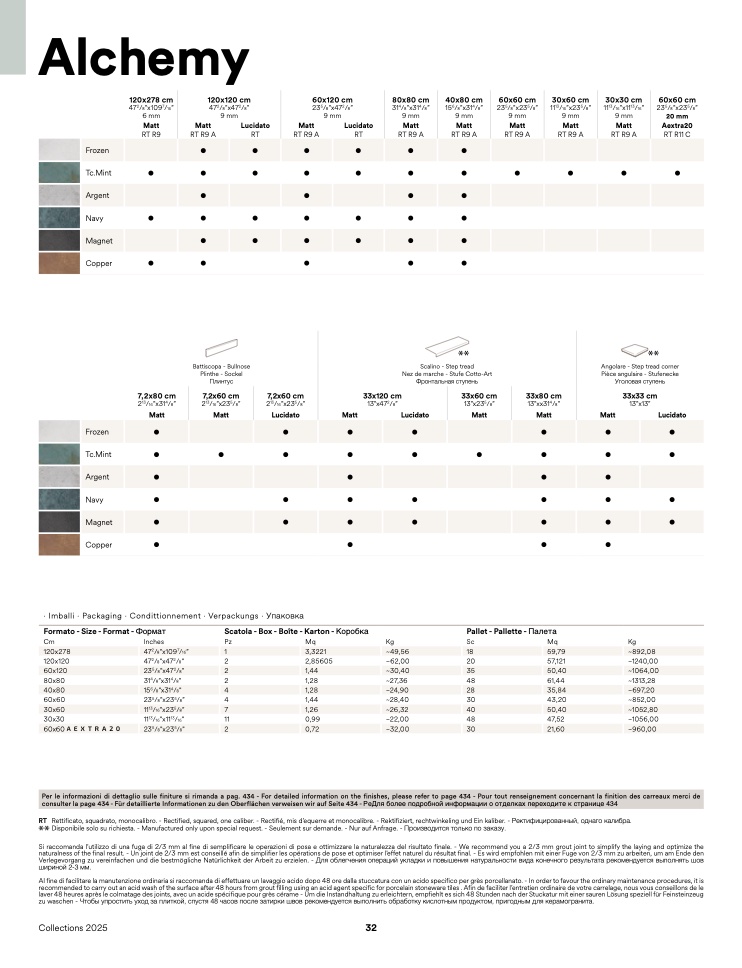 Per le informazioni di dettaglio sulle finiture si rimanda a pag. 434 - For detailed information on the finishes, please refer to page 434 - Pour tout renseignement concernant la finition des carreaux merci de