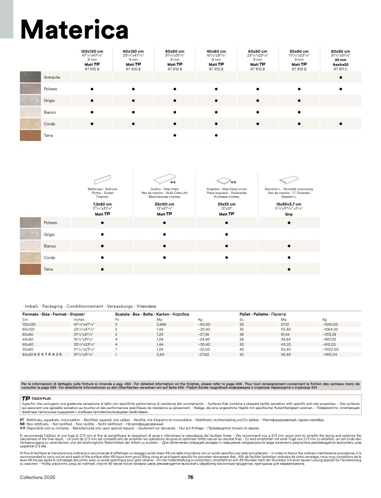 Per le informazioni di dettaglio sulle finiture si rimanda a pag. 434 - For detailed information on the finishes, please refer to page 434 - Pour tout renseignement concernant la finition des carreaux merci de