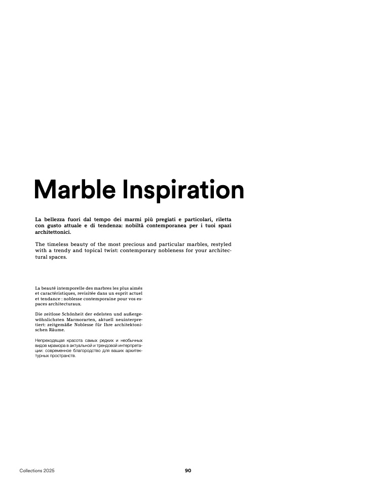 The timeless beauty of the most precious and particular marbles, restyled