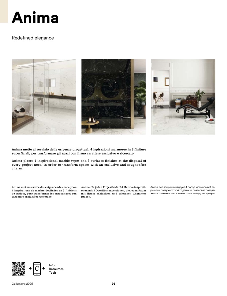 Anima mette al servizio delle esigenze progettuali 4 ispirazioni marmoree in 3 finiture
