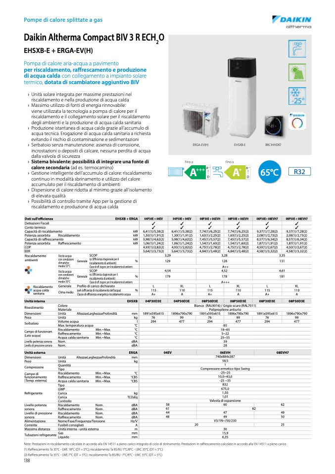 (2) Raffrescamento Ta 35°C - LWE 7°C (DT = 5°C); riscaldamento Ta BS/BU -7°C/6°C - LWC 35°C (DT = 5°C)