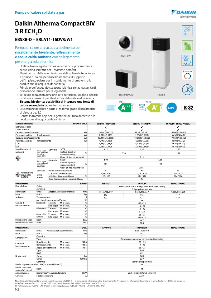 (2) Raffrescamento Ta 35°C - LWE 7°C (DT = 5°C); riscaldamento Ta BS/BU -7°C/6°C - LWC 35°C (DT = 5°C)