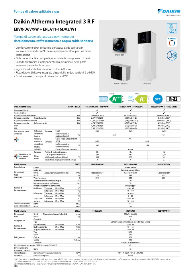 Note: Prestazioni in riscaldamento calcolate in accordo alla EN 14511 a pieno carico integrato di ciclo di sbrinamento. Prestazioni in raffrescamento calcolate in accordo alla EN 14511 a pieno carico.