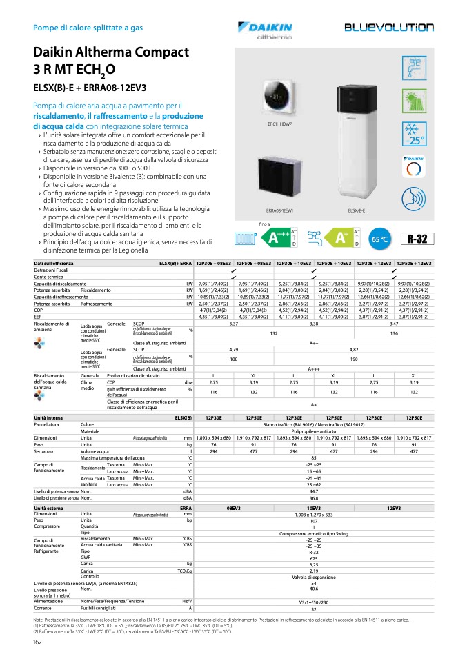 Note: Prestazioni in riscaldamento calcolate in accordo alla EN 14511 a pieno carico integrato di ciclo di sbrinamento. Prestazioni in ra