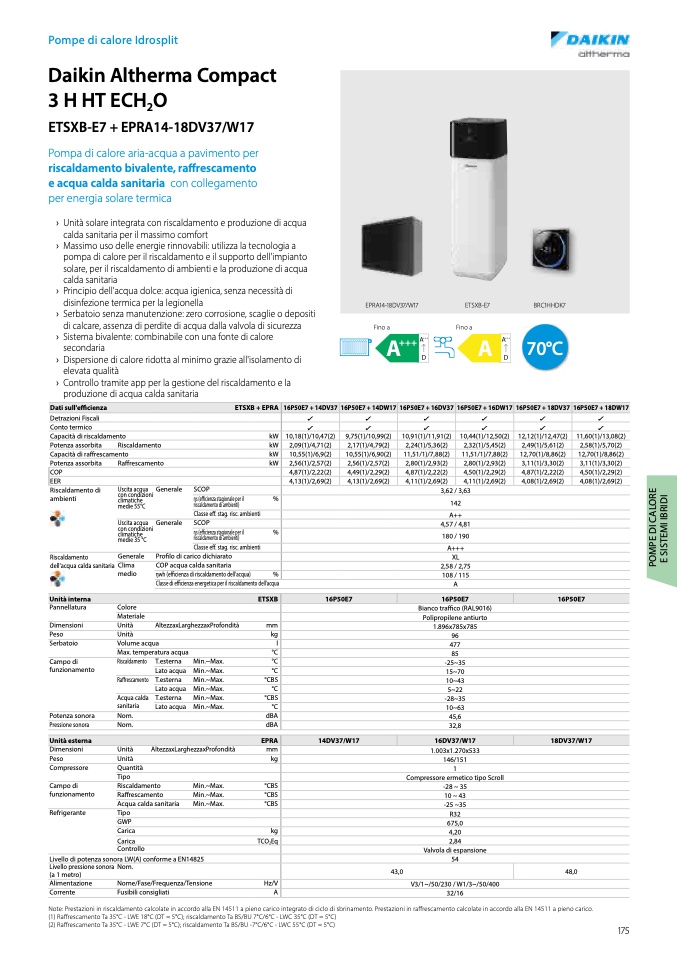 (2) Raffrescamento Ta 35°C - LWE 7°C (DT = 5°C); riscaldamento Ta BS/BU -7°C/6°C - LWC 55°C (DT = 5°C)