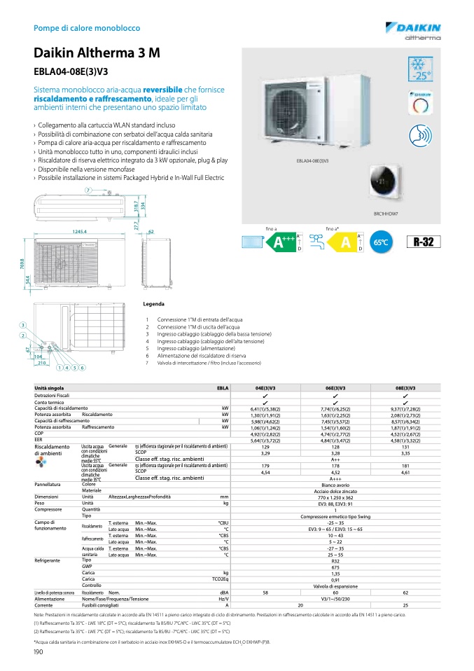 Note: Prestazioni in riscaldamento calcolate in accordo alla EN 14511 a pieno carico integrato di ciclo di sbrinamento. Prestazioni in ra