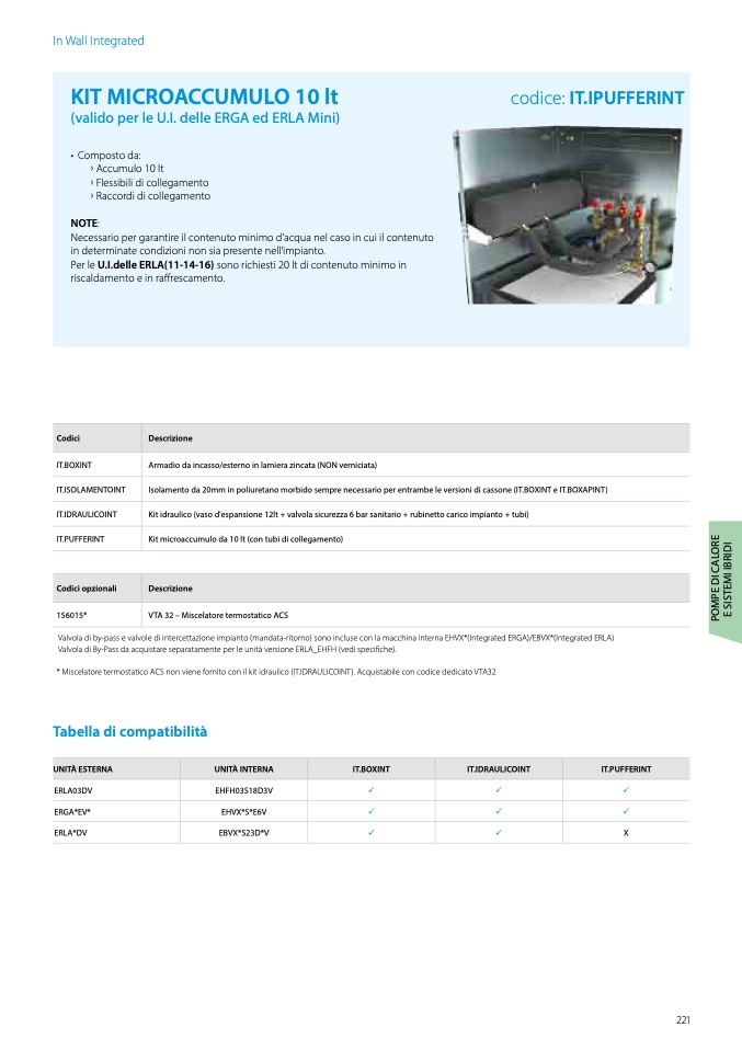 * Miscelatore termostatico ACS non viene fornito con il kit idraulico (IT.IDRAULICOINT). Acquistabile con codice dedicato VTA32
