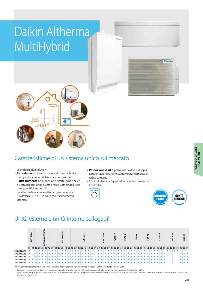 Per una panoramica completa su tutti i modelli di unita interna abbinabili fare riferimento al catalogo Gamma residenziale Bluevolution