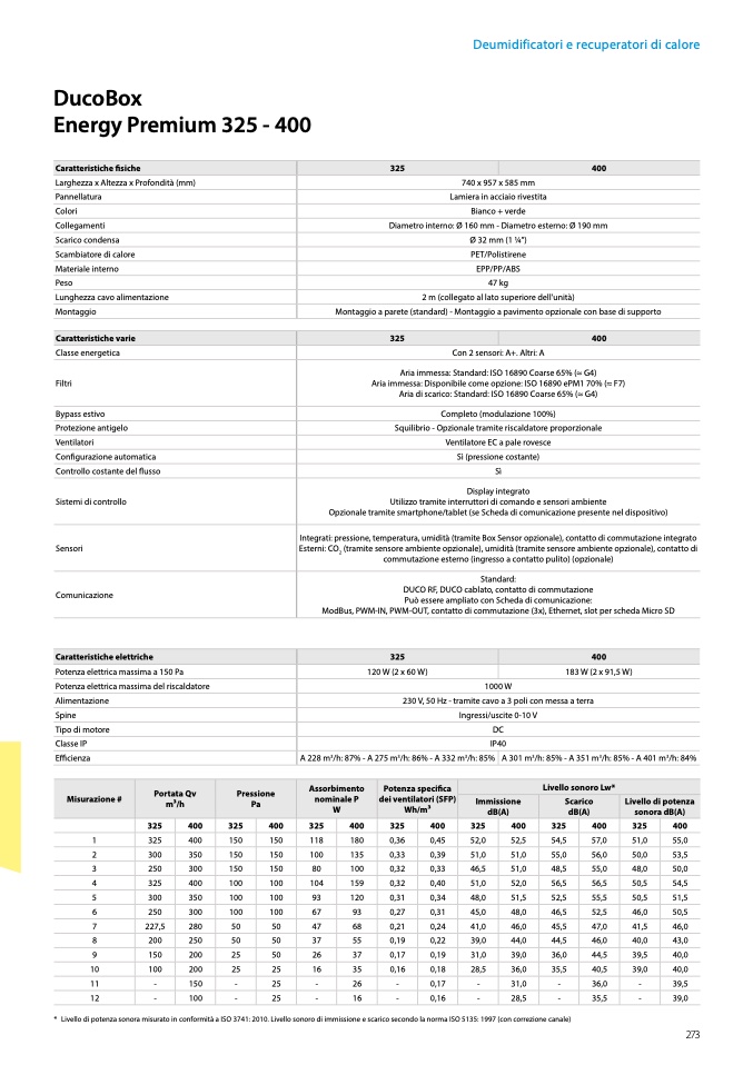 * Livello di potenza sonora misurato in conformità a ISO 3741: 2010. Livello sonoro di immissione e scarico secondo la norma ISO 5135: 1997 (con correzione canale)