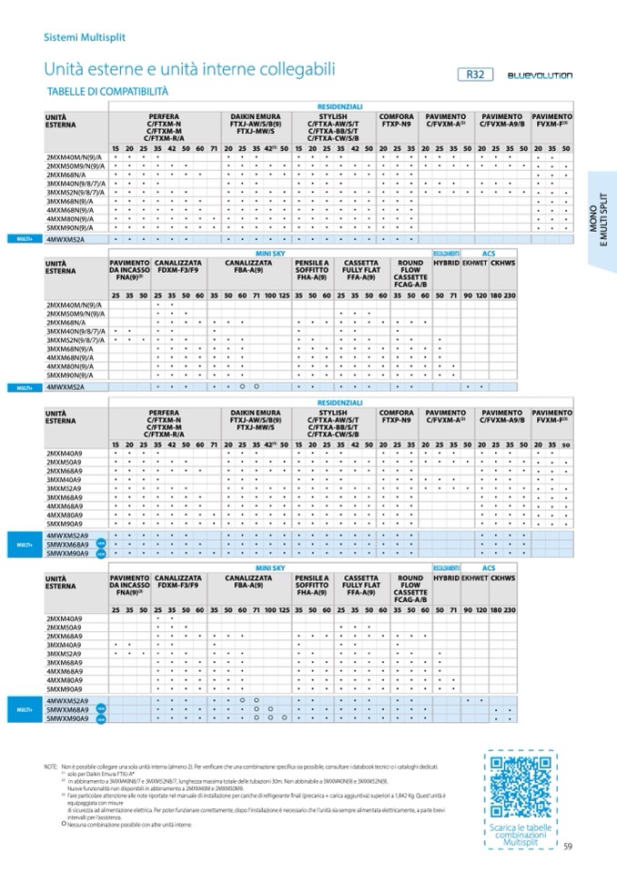 è possibile collegare una sola unità interna (almeno 2). Per verificare che una combinazione specifica sia possibile, consultare i databook tecnici o i cataloghi dedicati.