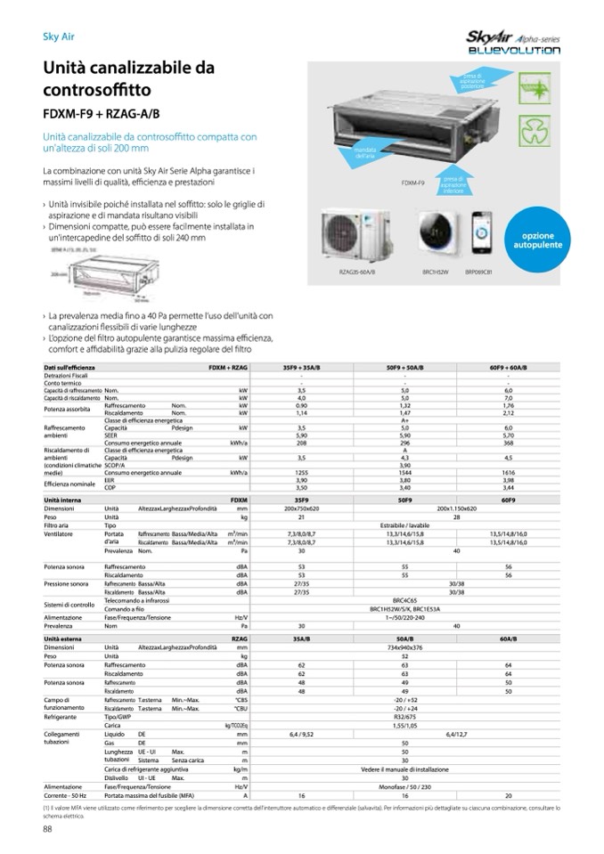 (1) Il valore MFA viene utilizzato come riferimento per scegliere la dimensione corretta dell'interruttore automatico e di