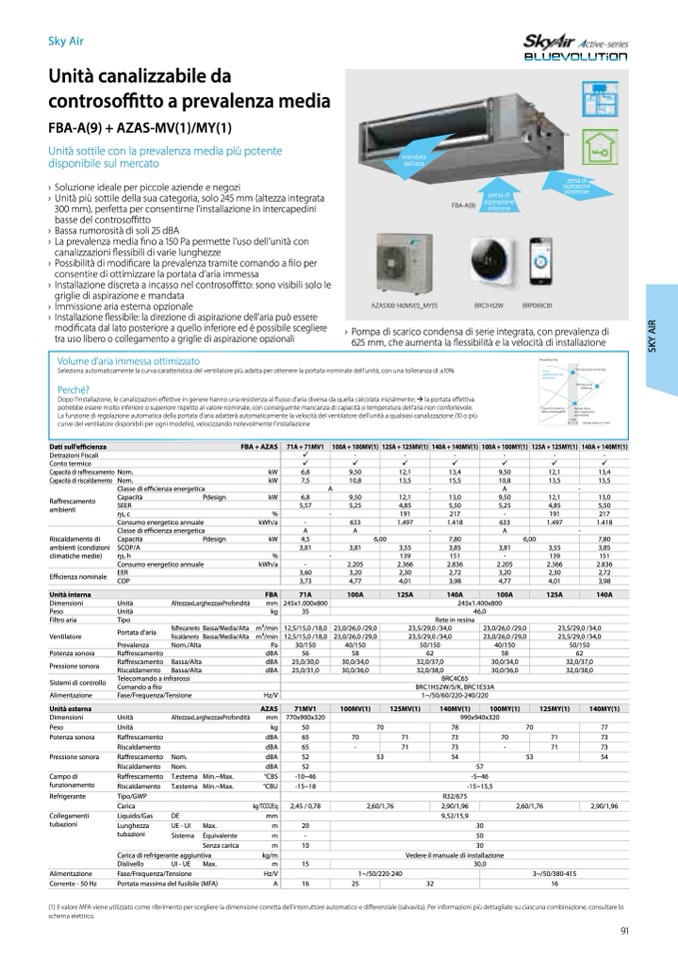 (1) Il valore MFA viene utilizzato come riferimento per scegliere la dimensione corretta dell'interruttore automatico e di