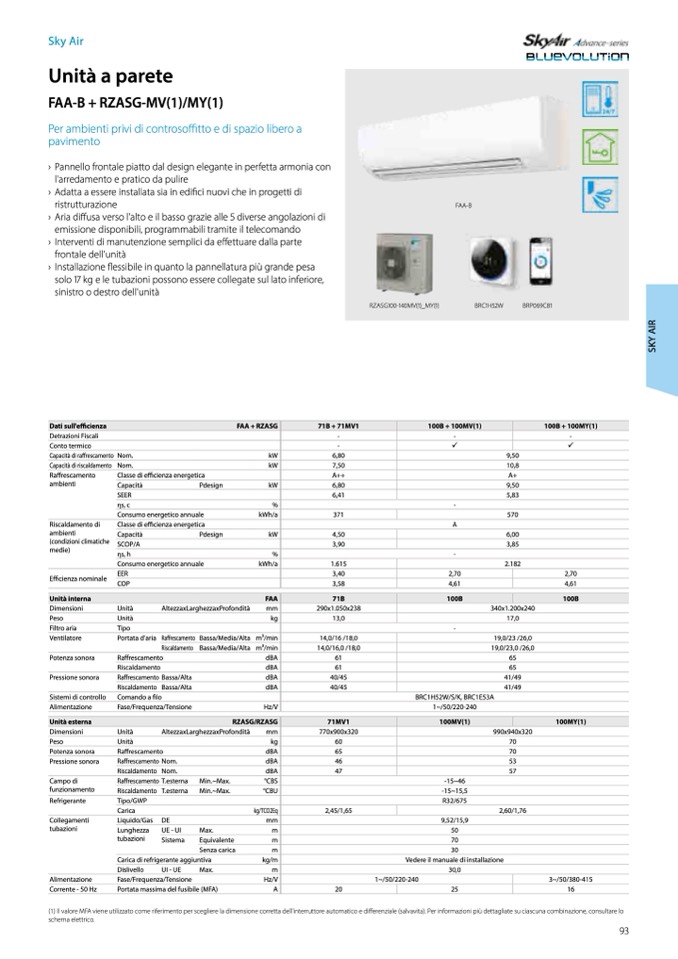 (1) Il valore MFA viene utilizzato come riferimento per scegliere la dimensione corretta dell'interruttore automatico e di
