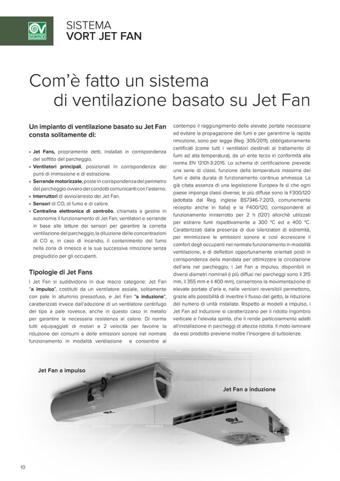 autonomia il funzionamento di Jet Fan, ventilatori e serrande