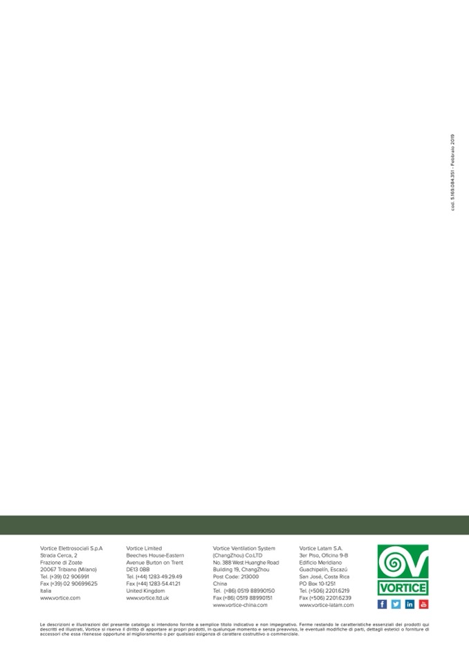 descritti ed illustrati, Vortice si riserva il diritto di apportare ai propri prodotti, in qualunque momento e senza preavviso, le eventuali modifiche di parti, dettagli estetici o forniture di