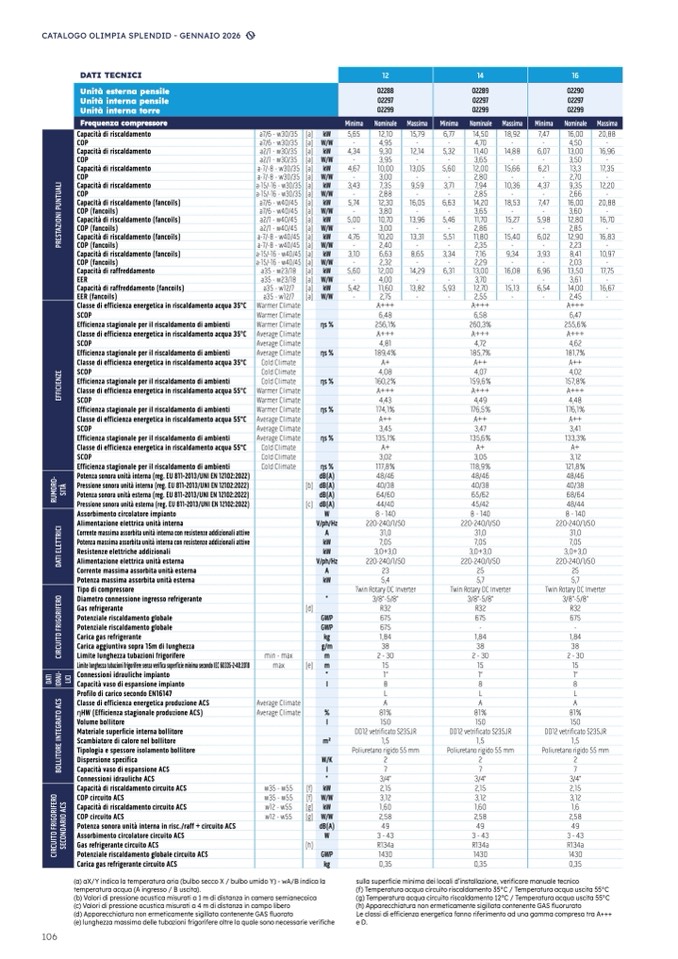 (a) aX/Y indica la temperatura aria (bulbo secco X / bulbo umido Y) - wA/B indica la