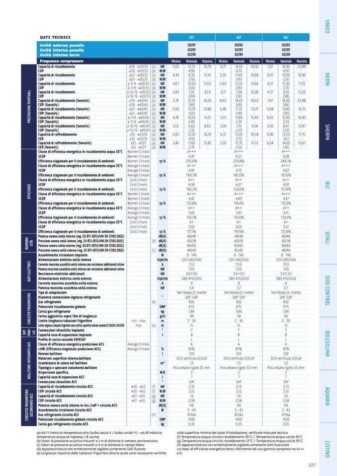 (a) aX/Y indica la temperatura aria (bulbo secco X / bulbo umido Y) - wA/B indica la