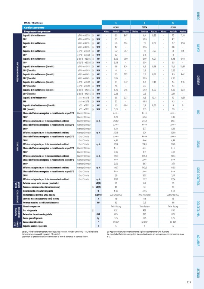 (a) aX/Y indica la temperatura aria (bulbo secco X / bulbo umido Y) - wA/B indica la