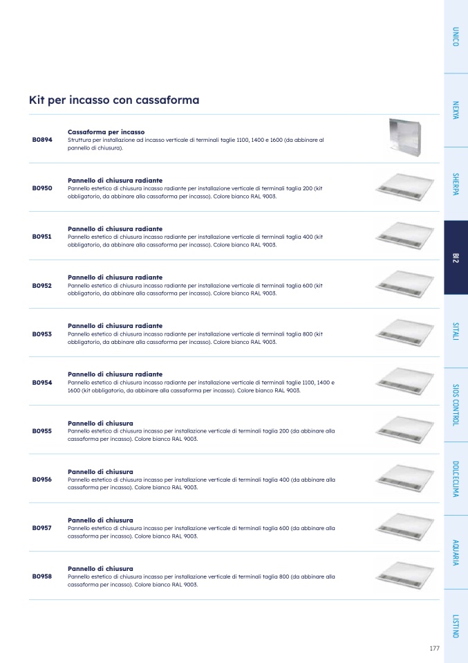 Pannello estetico di chiusura incasso radiante per installazione verticale di terminali taglie 1100, 1400