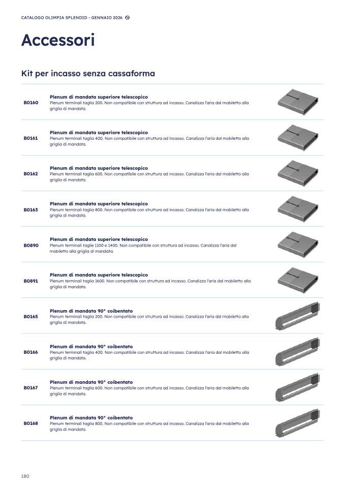 Plenum terminali taglie 1100 e 1400. Non compatibile con struttura ad incasso. Canalizza l’aria dal
