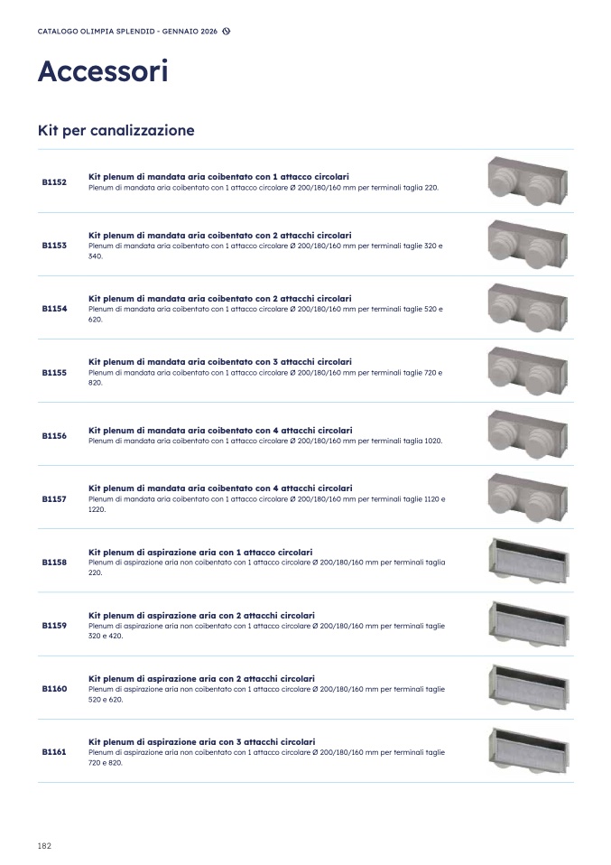 Plenum di mandata aria coibentato con 1 attacco circolare Ø 200/180/160 mm per terminali taglie 1120 e