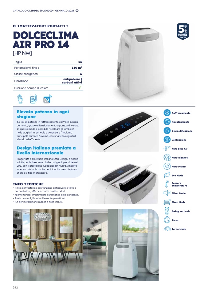 3.5 kW di potenza in raffrescamento e 2.9 kW in riscal-