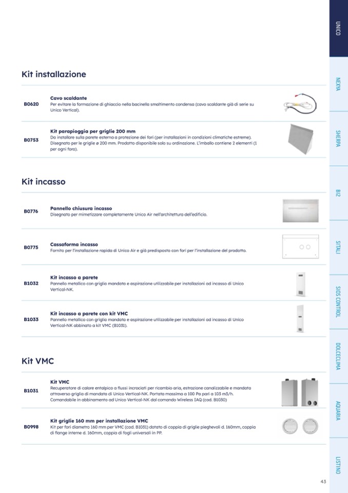 Comandabile in abbinamento ad Unico Vertical-NK dal comando Wireless IAQ (cod. B1030