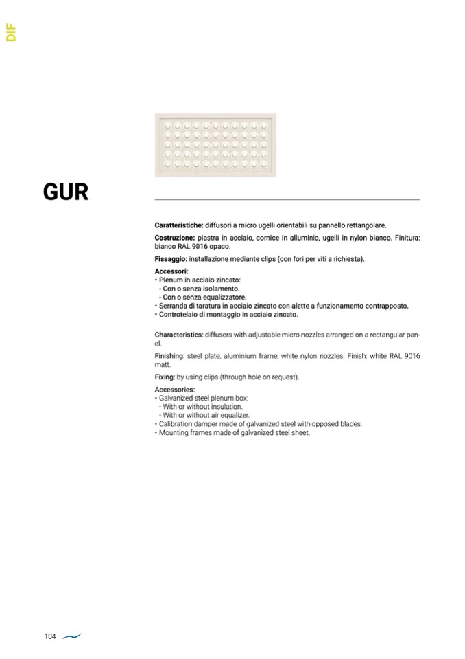 Caratteristiche: diffusori a micro ugelli orientabili su pannello rettangolare.