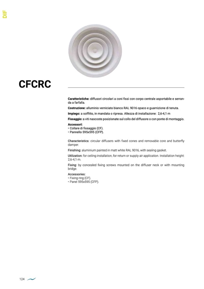 Characteristics: circular diffusers with fixed cones and removable core and butter