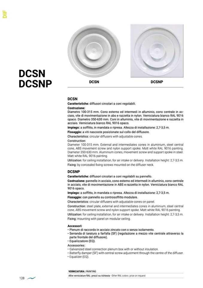 Utilization: for ceiling installation, for air intake or delivery. Installation height: 2,7-3,5 m.