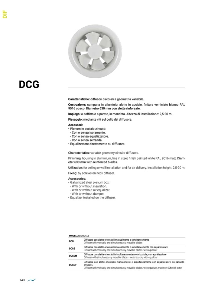 Utilization: for ceiling or wall installation and for air delivery. Installation height: 2,5-20 m.