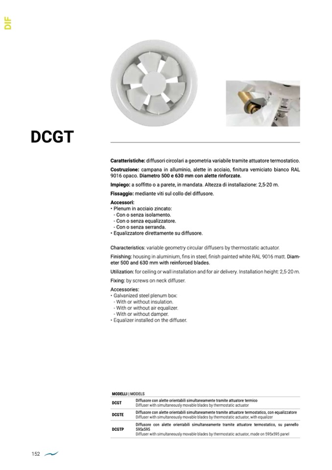 Characteristics: variable geometry circular diffusers by thermostatic actuator.