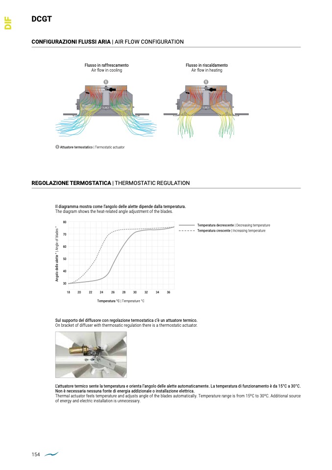 L’attuatore termico sente la temperatura e orienta l’angolo delle alette automaticamente. La temperatura di funzionamento