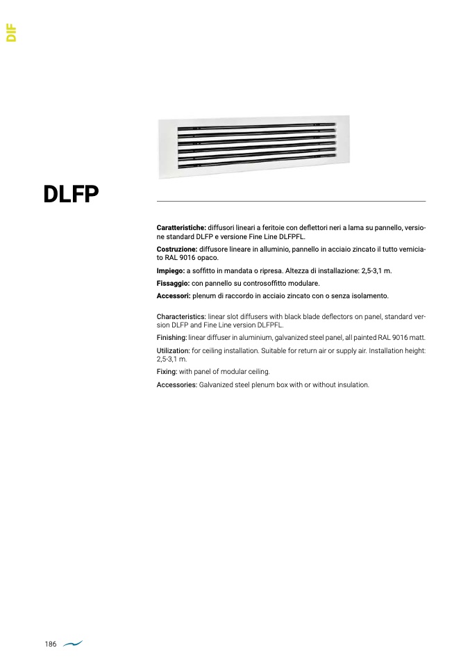 Caratteristiche: diffusori lineari a feritoie con deflettori neri a lama su pannello, versio-