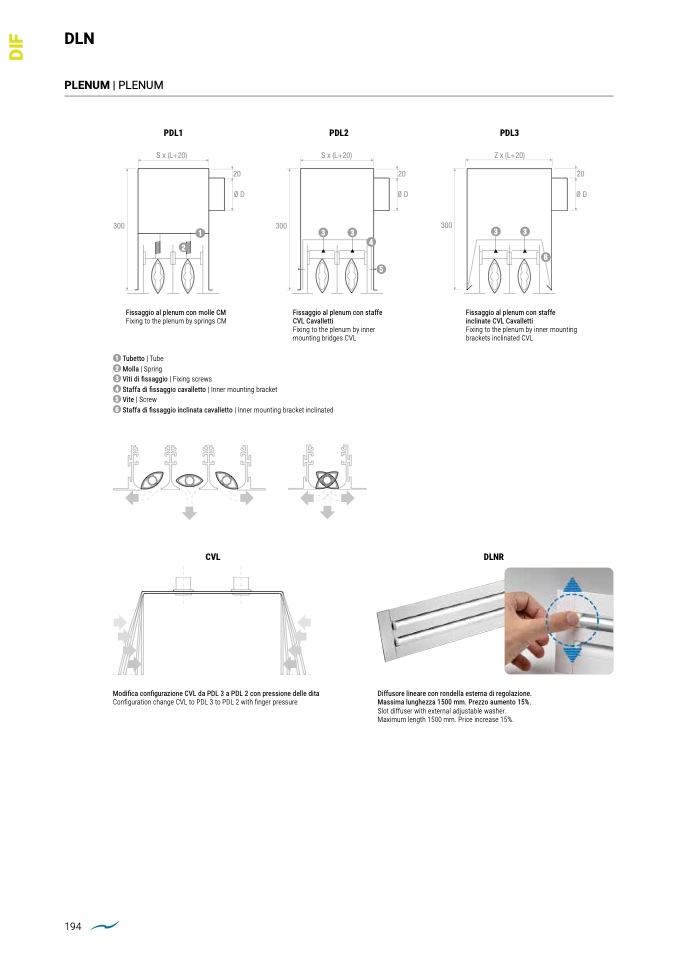 Diffusore lineare con rondella esterna di regolazione.