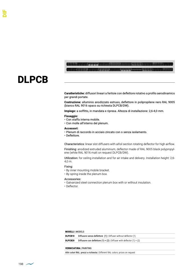 Characteristics: linear slot diffusers with aifoil section rotating deflector for high airflow.