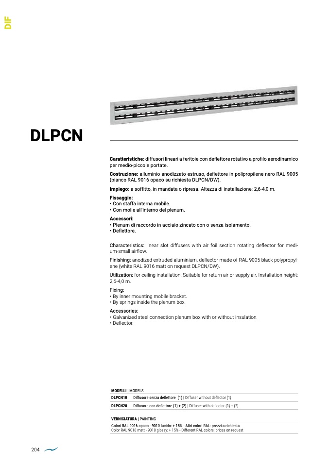 (bianco RAL 9016 opaco su richiesta DLPCN/DW).