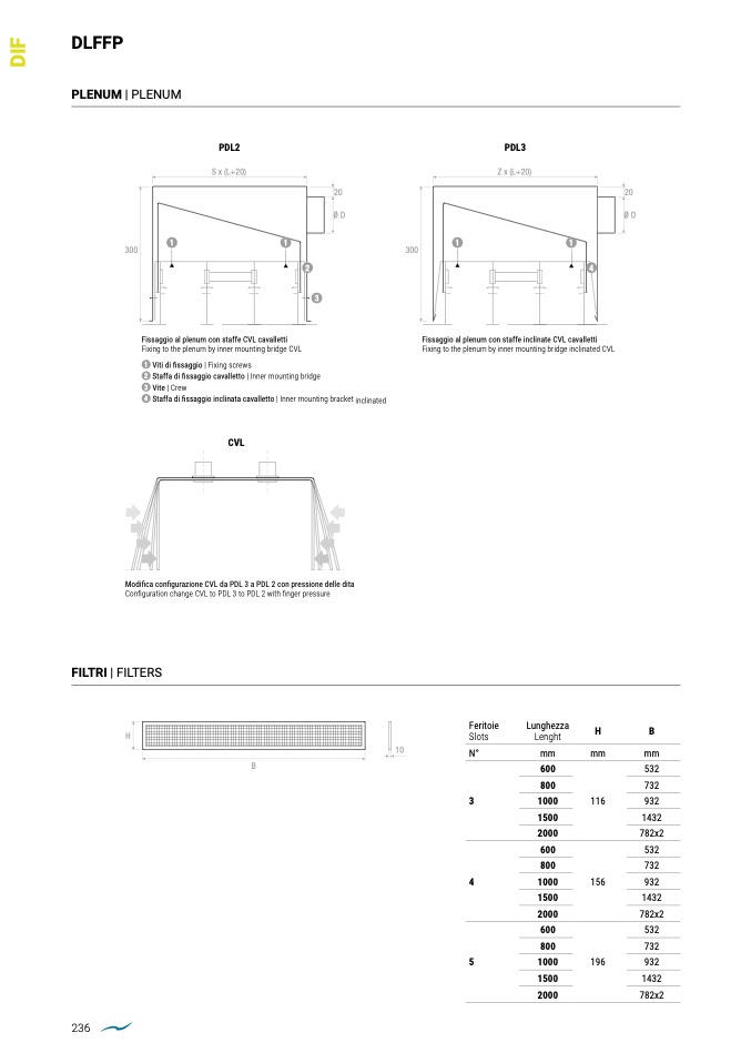 Fixing to the plenum by inner mounting bridge inclinated CVL