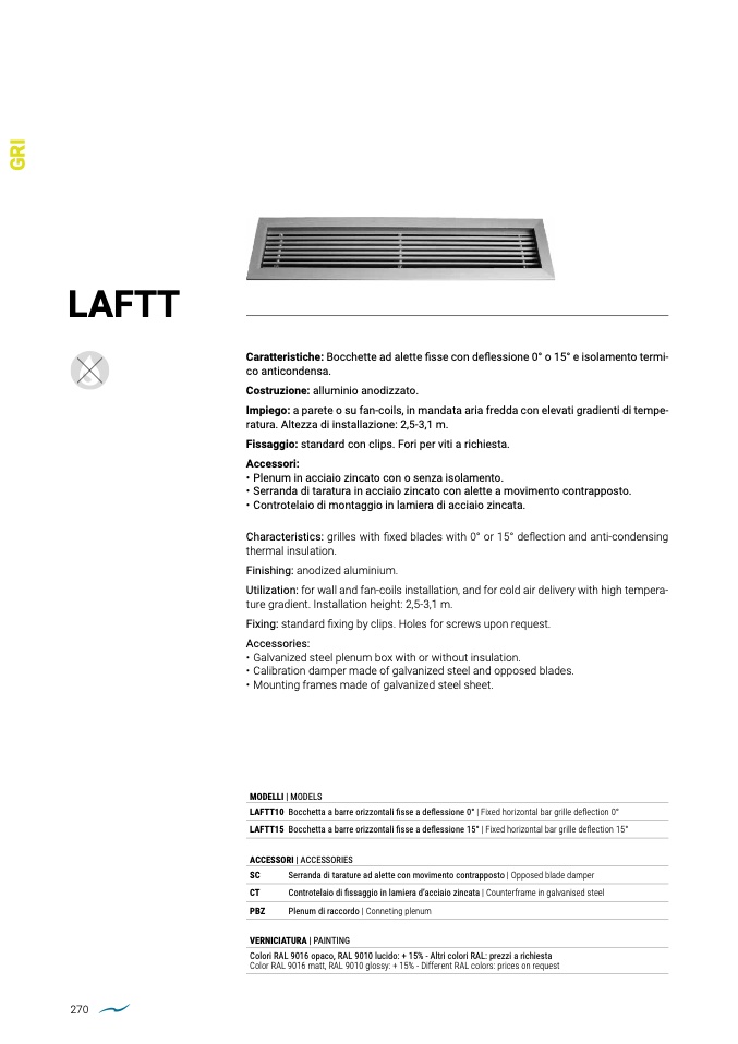 LAFTT15 Bocchetta a barre orizzontali fisse a deflessione 15° | Fixed horizontal bar grille deflection 15°