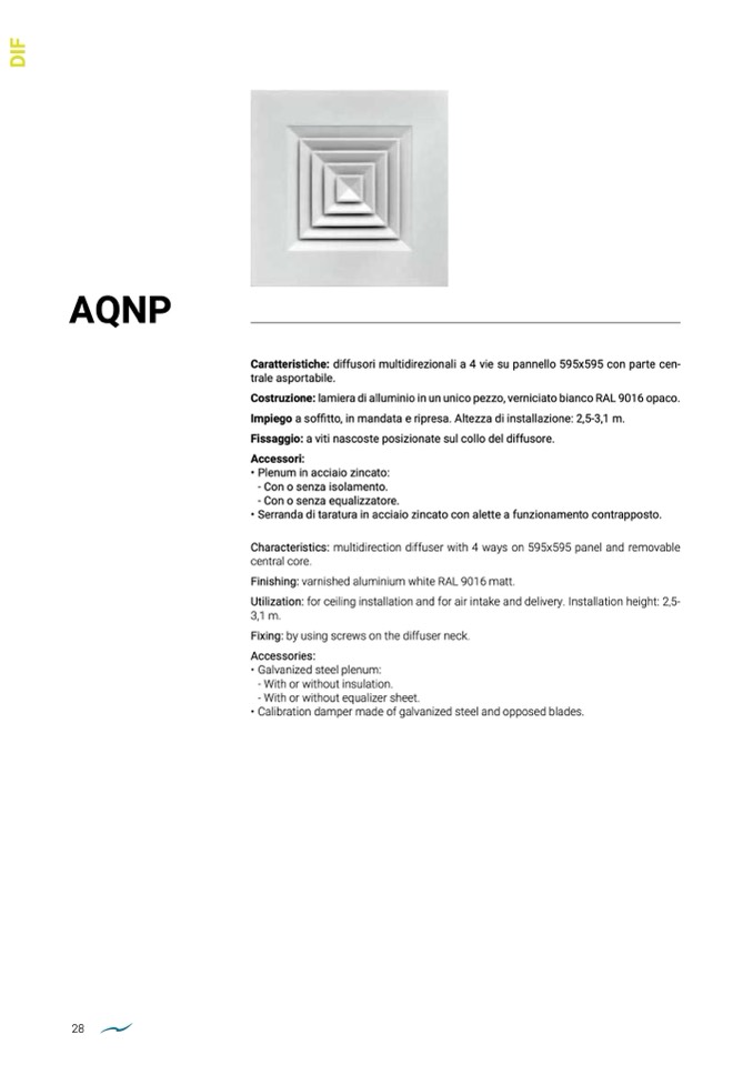 Utilization: for ceiling installation and for air intake and delivery. Installation height: 2,5-