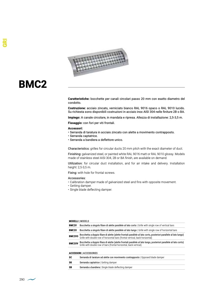 BMC2V Bocchetta a singolo filare di alette parallele al lato corto | Grille with single row of vertical bars