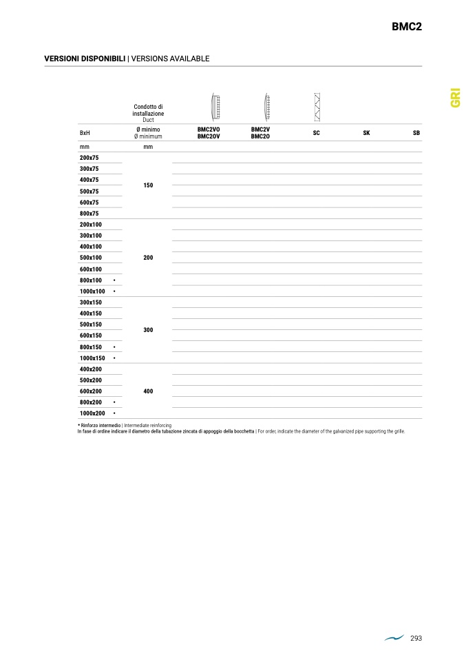In fase di ordine indicare il diametro della tubazione zincata di appoggio della bocchetta | For order, indicate the diameter of the galvanized pipe supporting the grille.