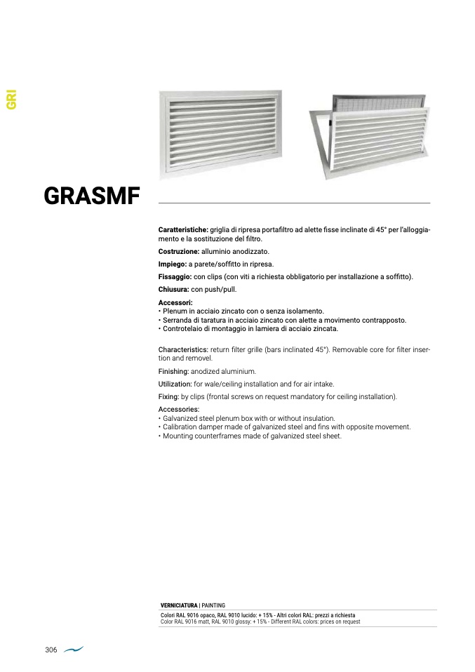 Colori RAL 9016 opaco, RAL 9010 lucido: + 15% - Altri colori RAL: prezzi a richiesta