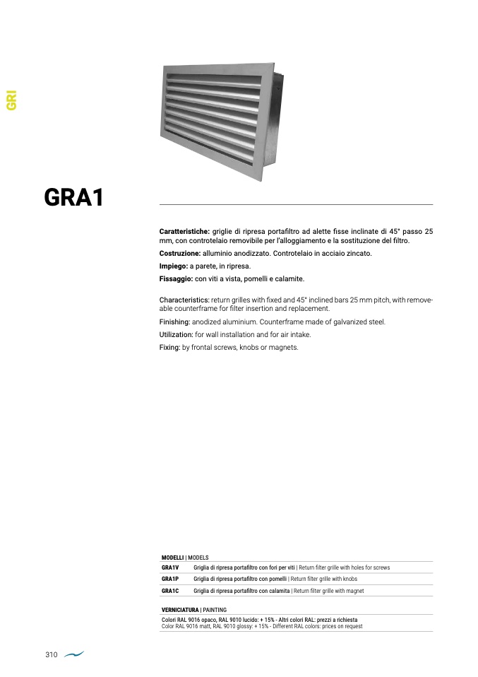 Colori RAL 9016 opaco, RAL 9010 lucido: + 15% - Altri colori RAL: prezzi a richiesta