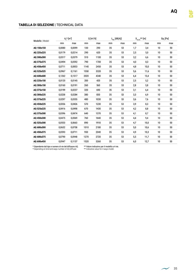 * Depending on kind and ways number of AQ diffuser.