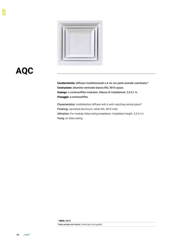 Characteristics: multidirection diffuser with 4 with matching central panel.*